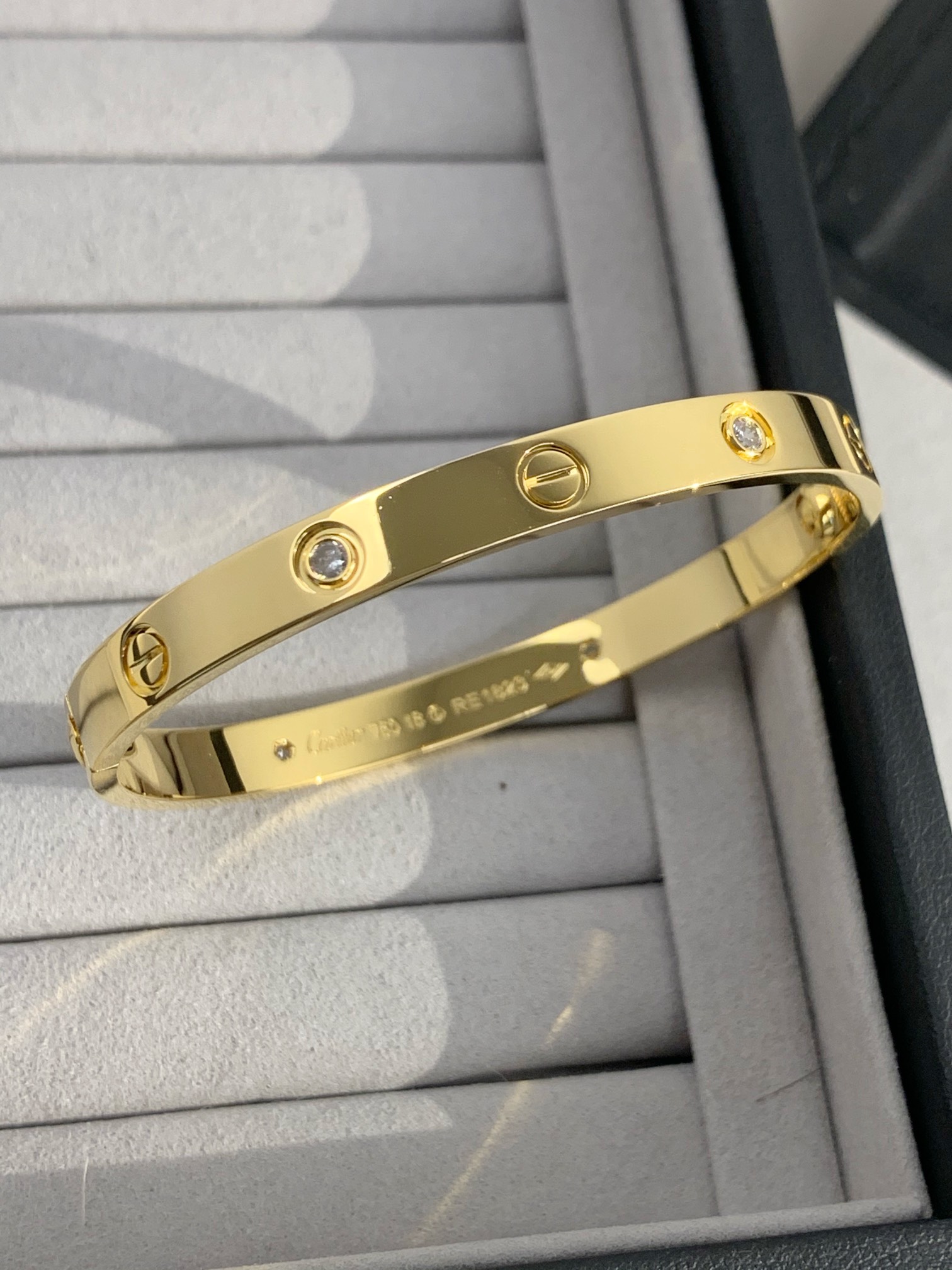 CartierスタイルのLOVEシリーズ ワイドバングル 4ダイヤモンド(3色展開:ホワイトゴールド/ピンクゴールド/ゴールド)