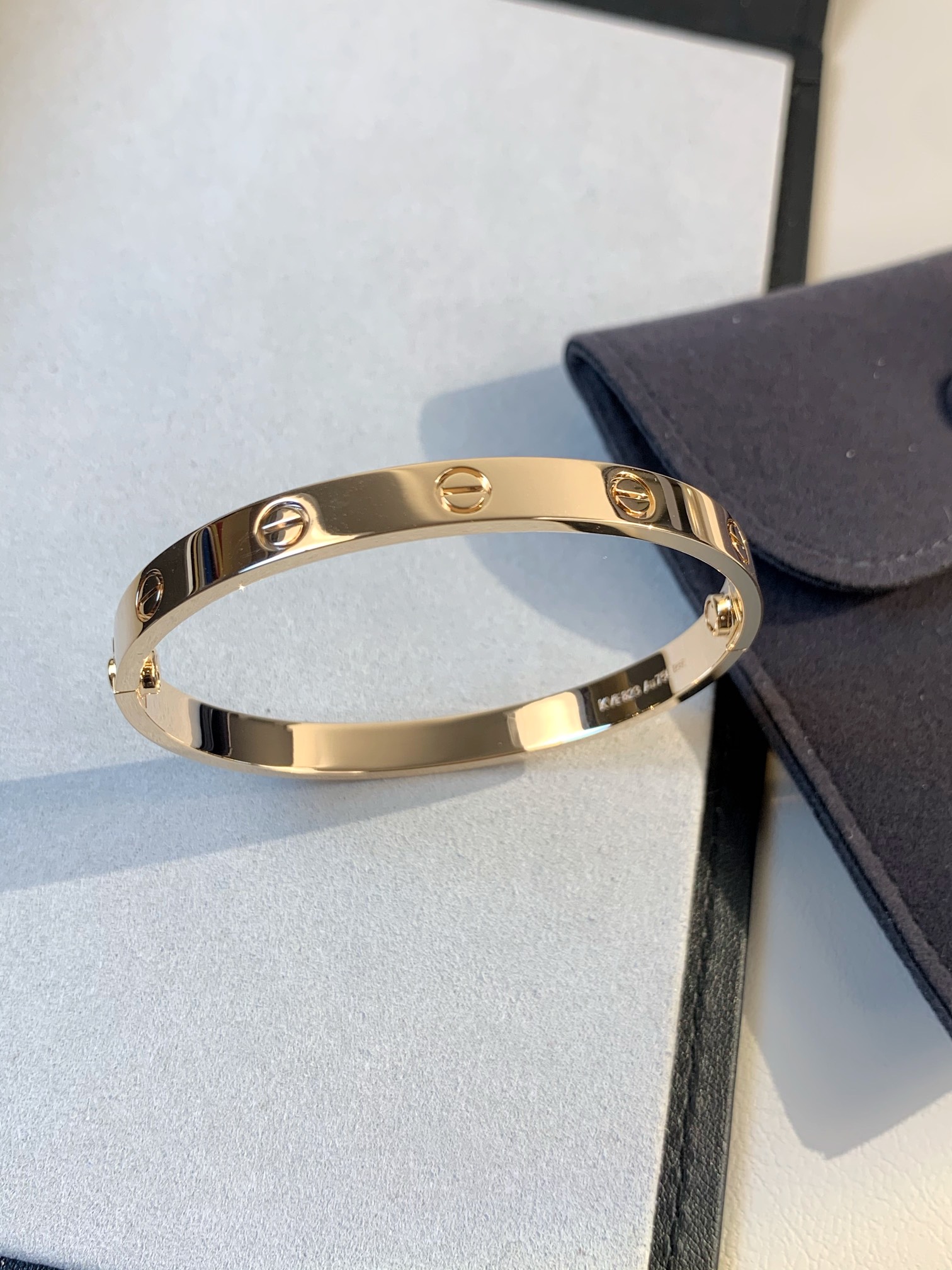 CartierスタイルのLOVEシリーズ幅広ノンダイヤブレスレット(3色展開:ホワイトゴールド/ピンクゴールド/ゴールド)