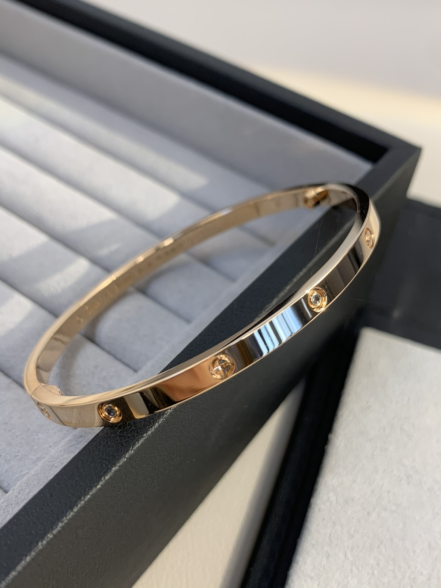 Cartierスタイルのスリム6ダイヤモンドLOVEバングル(3色展開:ホワイトゴールド/ピンクゴールド/ゴールド)