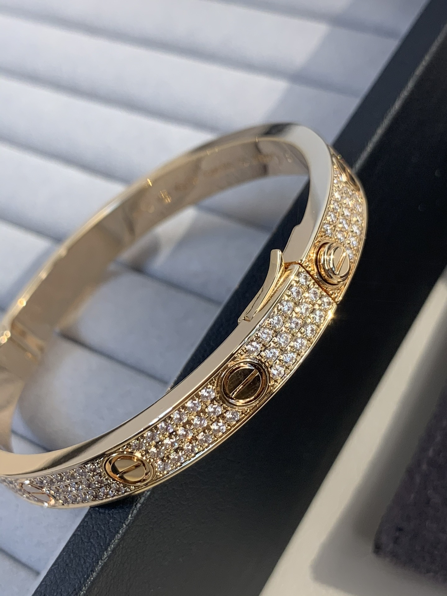 Cartierスタイルのクラシック幅広フルダイヤモンドLOVEバングル(3色展開:ホワイトゴールド/ピンクゴールド/ゴールド)