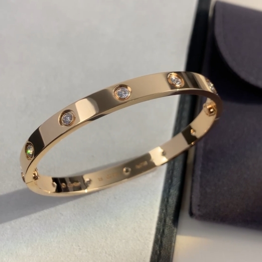 CartierスタイルのLOVEシリーズ幅広10ダイヤモンドブレスレット(3色展開:ホワイトゴールド/ピンクゴールド/ゴールド)
