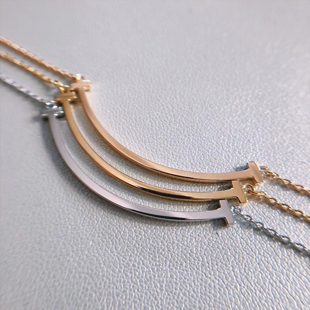 ミニマルスマイルネックレス・スモールサイズ(Tチャーム付き)|長さ40~45cm調整可能|ホワイトゴールド/ローズゴールド/イエローゴールド|Tiffanyスタイル