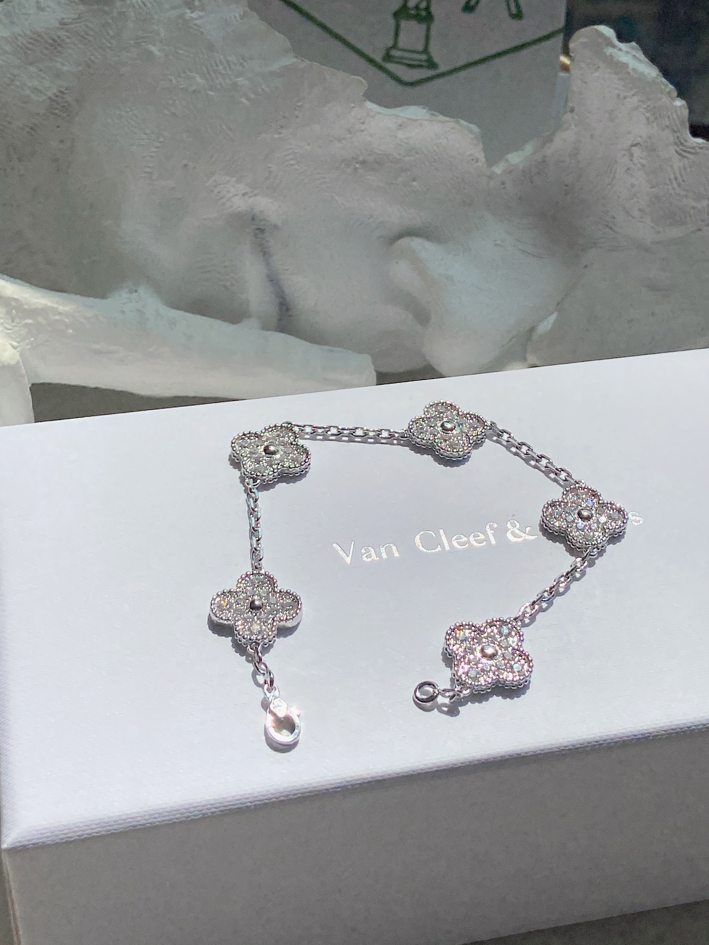 フルパヴェ クローバー5モチーフブレスレット|ホワイトゴールド|Van Cleef & Arpelsスタイル