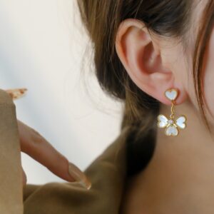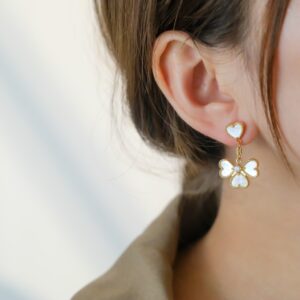 ホワイトマザーオブパール 四つ葉のクローバー ミニピアス|ホワイトゴールド/ローズゴールド/イエローゴールド|Van Cleef & Arpelsスタイル