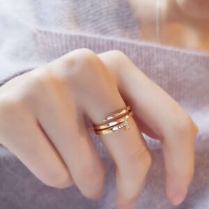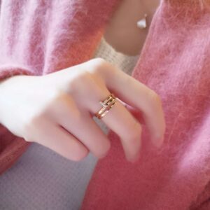 自由に巻きつくような3連構造が特徴のラップスタイルリング。指に沿って優雅にカーブし、まるで光が流れるような動きを感じさせます。シンプルながらも立体感のあるフォルムは、単体での着用でもしっかりとした存在感を放ち、重ね付けにもぴったり。日常使いはもちろん、フォーマルなシーンにもマッチするデザインで、洗練された個性を求める方におすすめです。