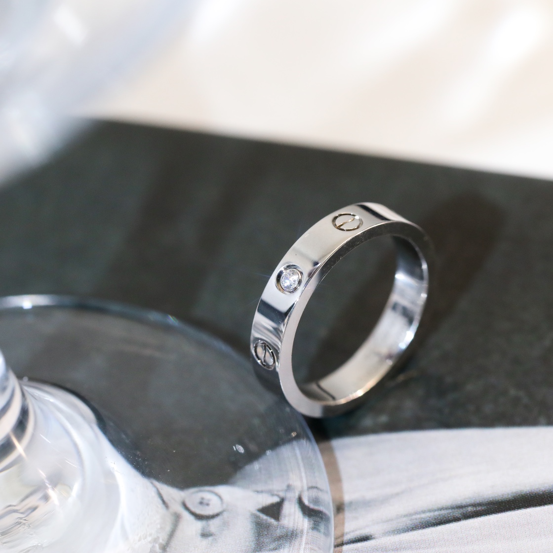シングルダイヤモンド×スクリューモチーフ スリムリング|ホワイトゴールド/ローズゴールド/イエローゴールド|Cartierスタイル