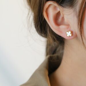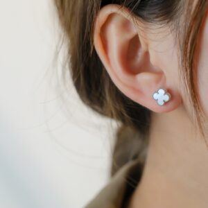 ホワイトマザーオブパール 四つ葉のクローバー ミニピアス|ホワイトゴールド/ローズゴールド/イエローゴールド|Van Cleef & Arpelsスタイル