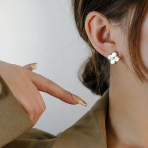 ホワイトマザーオブパール 四つ葉モチーフ ピアス(ミディアムサイズ)|ローズゴールド/イエローゴールド|Van Cleef & Arpelsスタイル