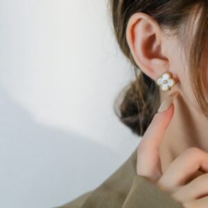 グレーマザーオブパール ミニフラワーピアス|Van Cleef & Arpelsスタイル