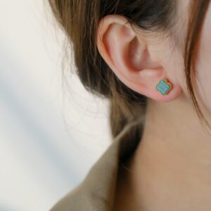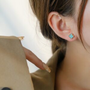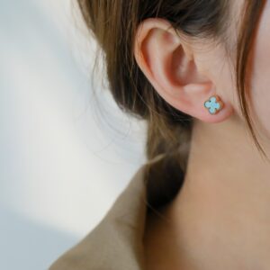 ホワイトマザーオブパール 四つ葉のクローバー ミニピアス|ホワイトゴールド/ローズゴールド/イエローゴールド|Van Cleef & Arpelsスタイル