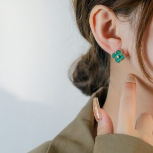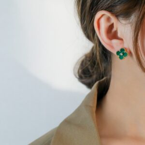 マラカイト 四つ葉モチーフ ピアス(ダイヤ付き)|ローズゴールド/イエローゴールド|Van Cleef & Arpelsスタイル