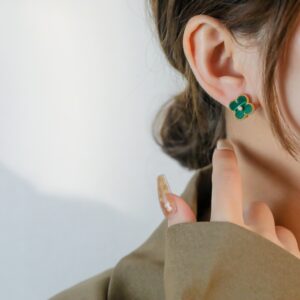 オニキス 四つ葉のクローバー ミニピアス|Van Cleef & Arpelsスタイル
