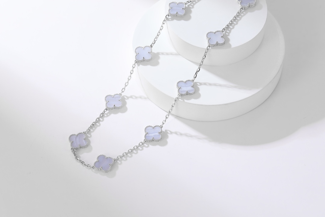 ブルーカルセドニー 四つ葉モチーフ 10連 ロングネックレス|イエローゴールド|Van Cleef & Arpelsスタイル