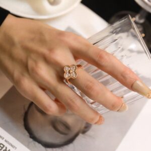ミルグレイン仕上げ 四つ葉モチーフリング|ホワイトゴールド/ローズゴールド|Van Cleef & Arpels Perlée Sweet Cloversスタイル